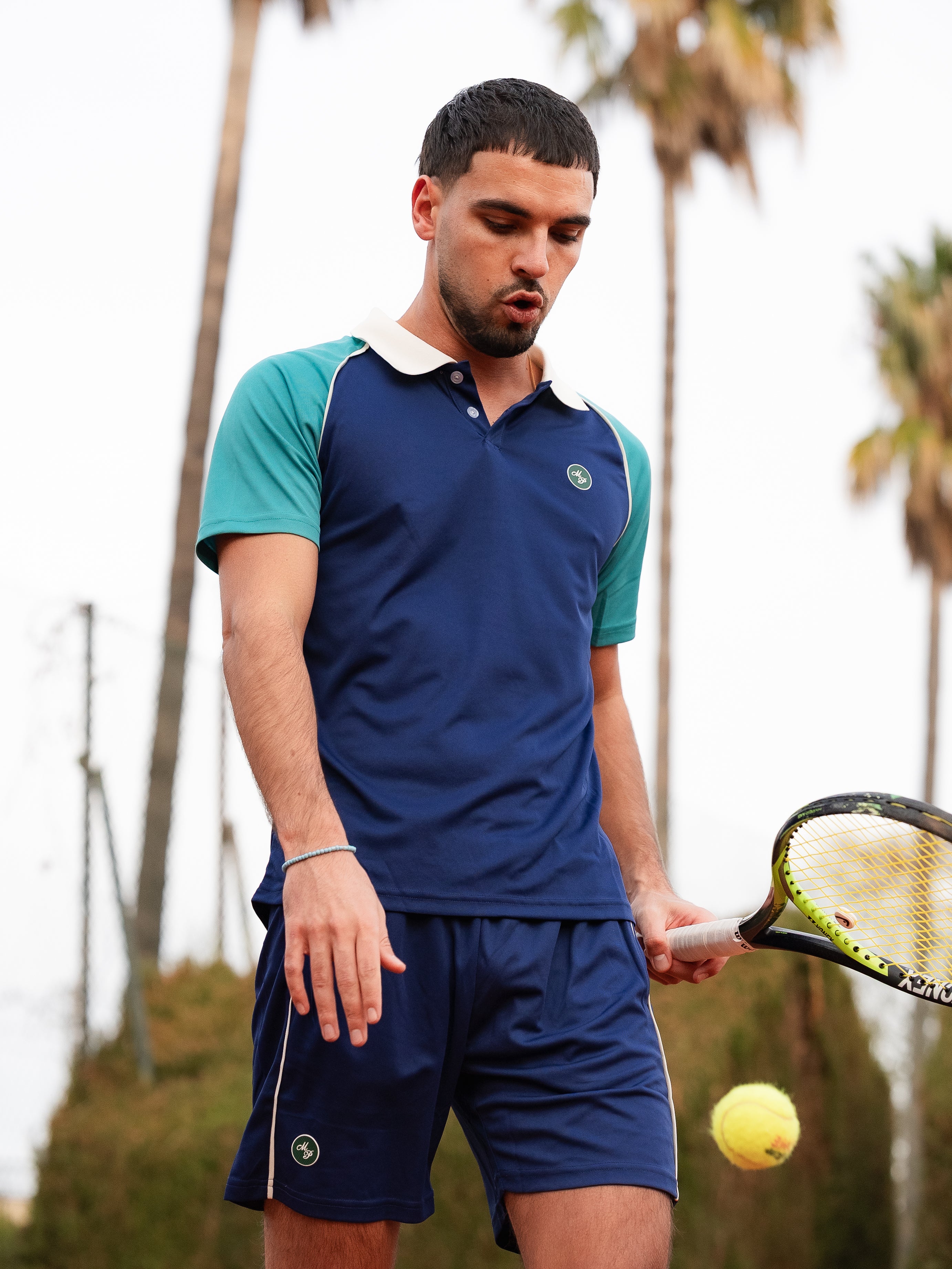 Le polo Riviera incarne l’élégance sportive dans sa version la plus pure. Conçu pour le mouvement et la performance, il associe une coupe classique à des finitions modernes. Son coloris bleu profond est subtilement rehaussé par des manches contrastées bleu-vert, signature visuelle inspirée de l’univers Match Point.